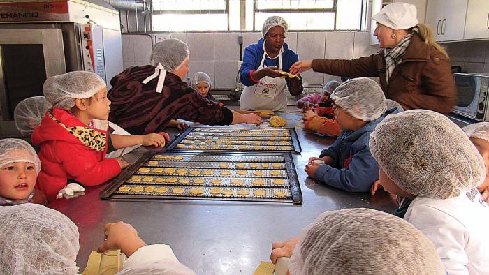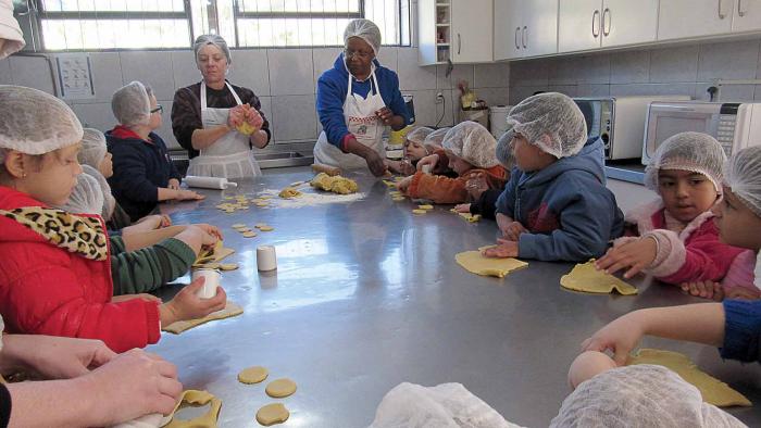 As professoras da Escola Municipal de Educação Infantil Cantinho da Mônica do centro de Coqueiro Baixo, no dia 18 de julho de 2017, oportunizaram para as crianças uma tarde cheia de surpresas para homenagear o dia dos vovôs, 26 de julho. O projeto leitura e a hora do conto que vem sendo desenvolvido diariamente na escola está contribuindo para despertar cada vez mais nas crianças a criatividade, imaginação e curiosidade. Após a narração da História Chapeuzinho Vermelho, e como estava se aproximando o dia dos avós, surgiu a ideia de imitarem a menina da história e também presentarem seus avós com doces. Foi então que resolveram confeccionar uma xícara com material reciclável, ainda não satisfeitos só com a xícara surgiu a ideia de aprender a fazer docinhos. Para regar o sonho e o desejo do aprender das crianças, as professoras assumiram o desafio realizando o sonho das crianças de serem fabricantes de doces por um dia. As crianças acompanhada por suas professoras dirigiram-se até a cantina na Secretaria de Educação Municipal. Inicialmente as merendeiras explicaram os procedimentos higiênicos como: lavar as mãos e usar a touca antes do preparo, após a quantidade de ingredientes a serem utilizados na preparação dos doces, modo de fazer e as diversas formas de produzir, assim deixando um doce diferente do outro, sendo que cada criança teve o seu jeitinho especial de modelar e a marca de cada um, demonstrando no aprendizado a satisfação em poder colaborar e participar no preparo dos doces e valorizando o dia dos vovôs. O amor e a sabedoria dos nossos avós são bênção que tornam nossas vidas melhores.