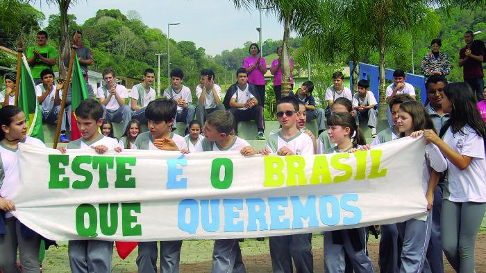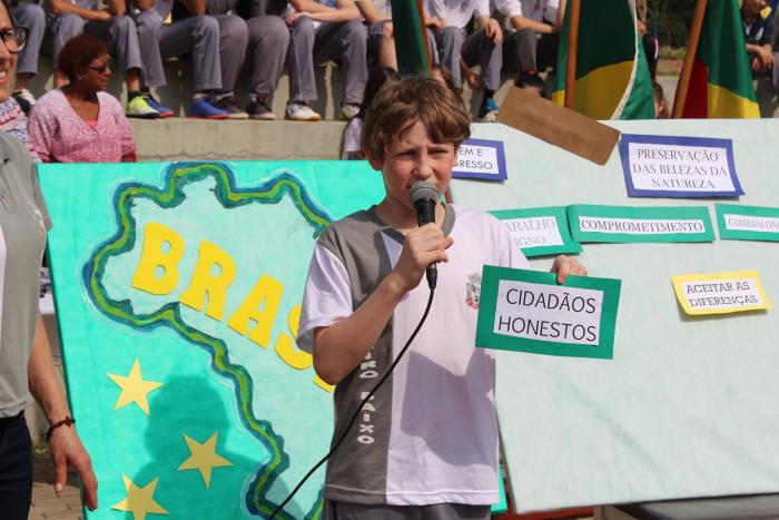O ato cívico iniciou na avenida Itália e foi até a praça central, localizada ao lado do Centro Administrativo, onde os alunos das escolas municipais realizaram apresentações, demonstrando qual o país que querem para viver. Um país sem falcatruas, sem roubalheiras, onde o bem maior é o povo. E para tal é necessário que tenham uma vida digna com tudo que lhe é de direito conforme o que manda a Constituição Nacional.
