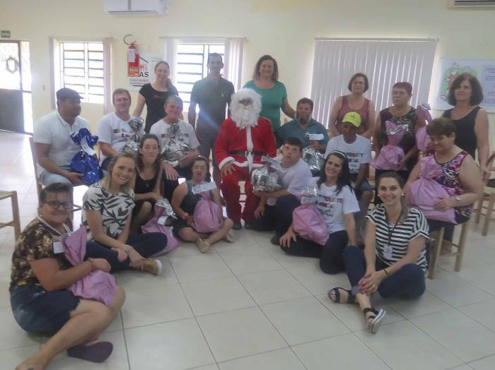 Já no dia 14/12, os PCDs e seus acompanhantes foram almoçar fora. Eles e a equipe do CRAS foi a Capitão almoçar num restaurante da cidade, promovendo um passeio em grupo. Na volta a Coqueiro Baixo, eles foram recepcionados pelo Papai Joel, que distribuiu abraços e presentinhos a todos.