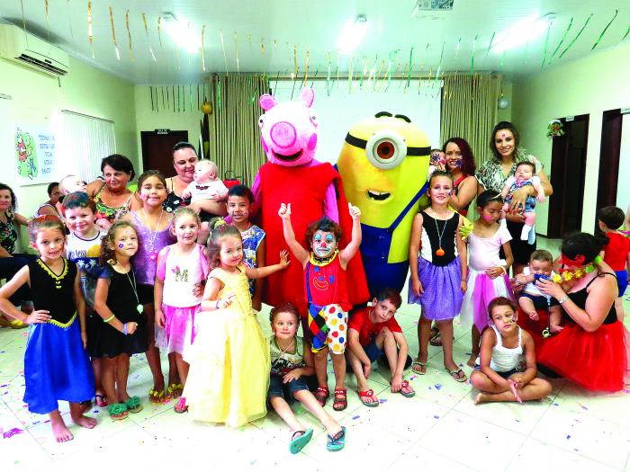 As crianças compareceram vestidas com as mais diferentes e criativas fantasias, tornando a festa ainda mais colorida e alegre.