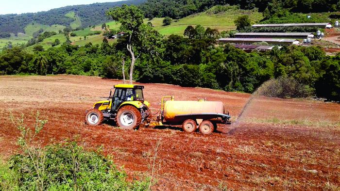 Estão sendo realizados trabalhos voltados para a distribuição de dejetos suínos, bovinos e de aves, bem como a continuação do serviço de silagem.